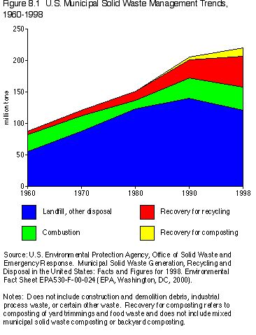 U.S. Environmental Protection Agency, Office of Solid Waste and Emergency Response, Municipal Solid Waste Generation, Recycling and Disposal in the United States: Facts and Figures for 1998. Environmental Fact Sheet. (EPA, Washington, DC, 2000). (http://www.epa.gov/epaoswer/non-hw/muncpl/msw99.htm)